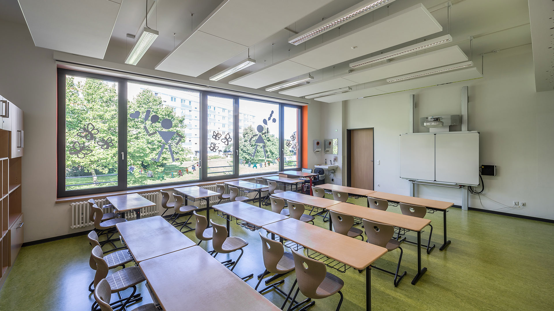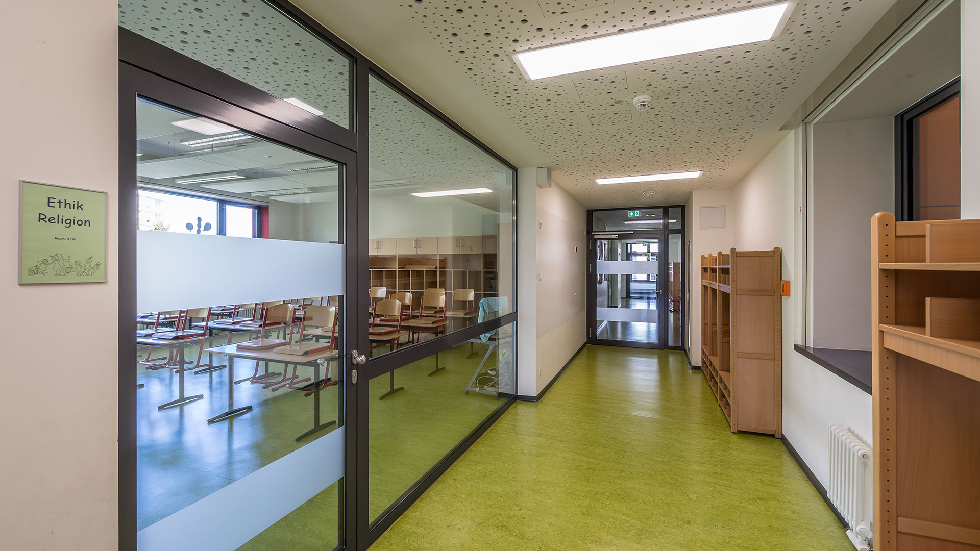 - Röhrenradiatoren in Unterrichts- und Aufenthaltsräumen und Planheizkörper in den Sanitärbereichen;