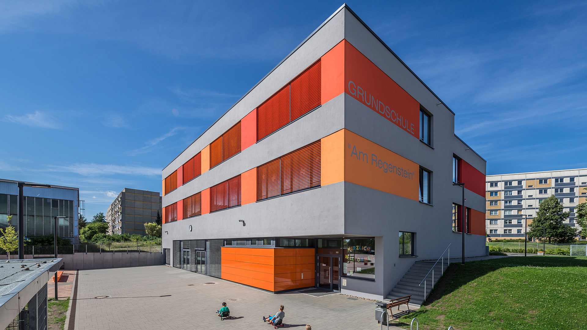 Die Stadt Blankenburg (Harz) errichtete im nördlichen Stadtgebiet mit Hilfe von Fördermitteln auf dem gleichen Standort der alten Schule den Neubau der Passivhausschule „Am Regenstein“ (Grundschule mit Klassen 1 – 4 für ca. 200 Schüler) als 3-geschossiges Schulgebäude (in Splitbauweise) mit integriertem Multifunktionsraum und Hortbereich.