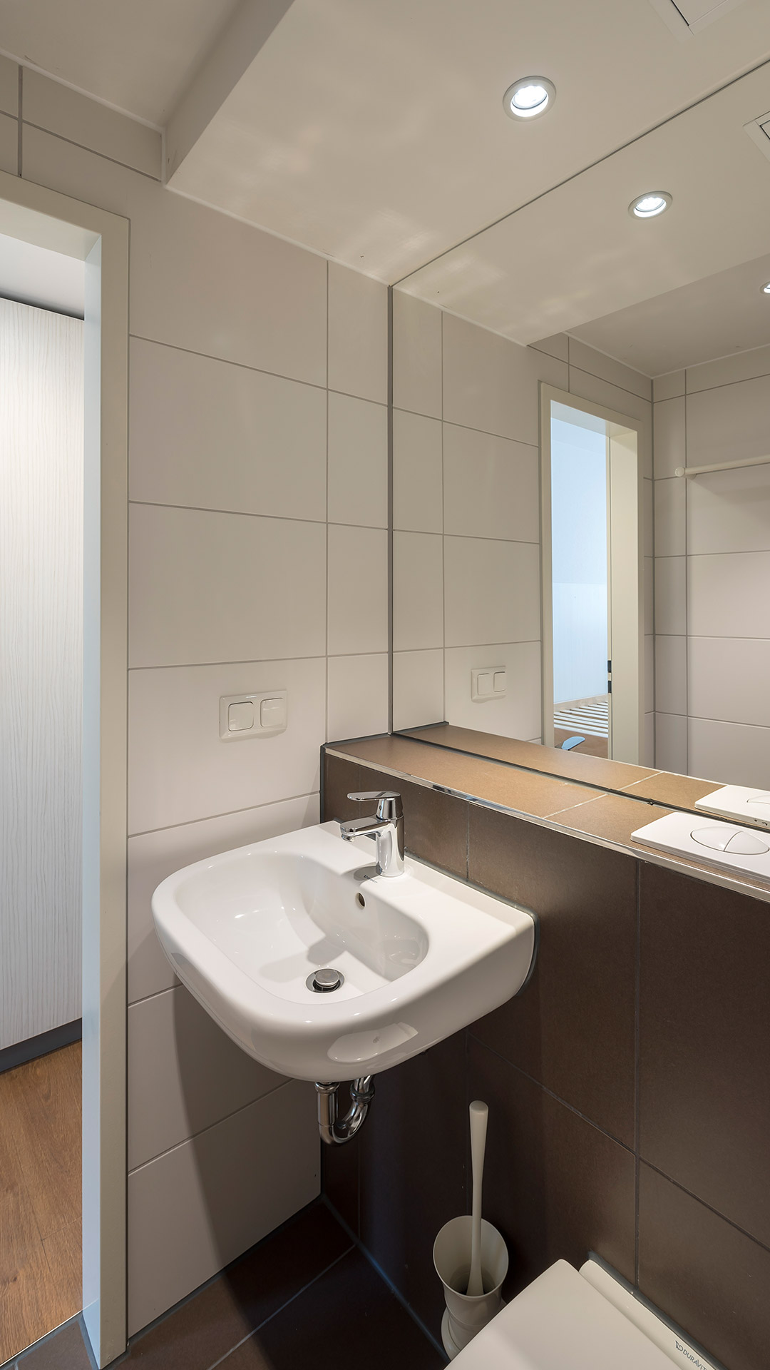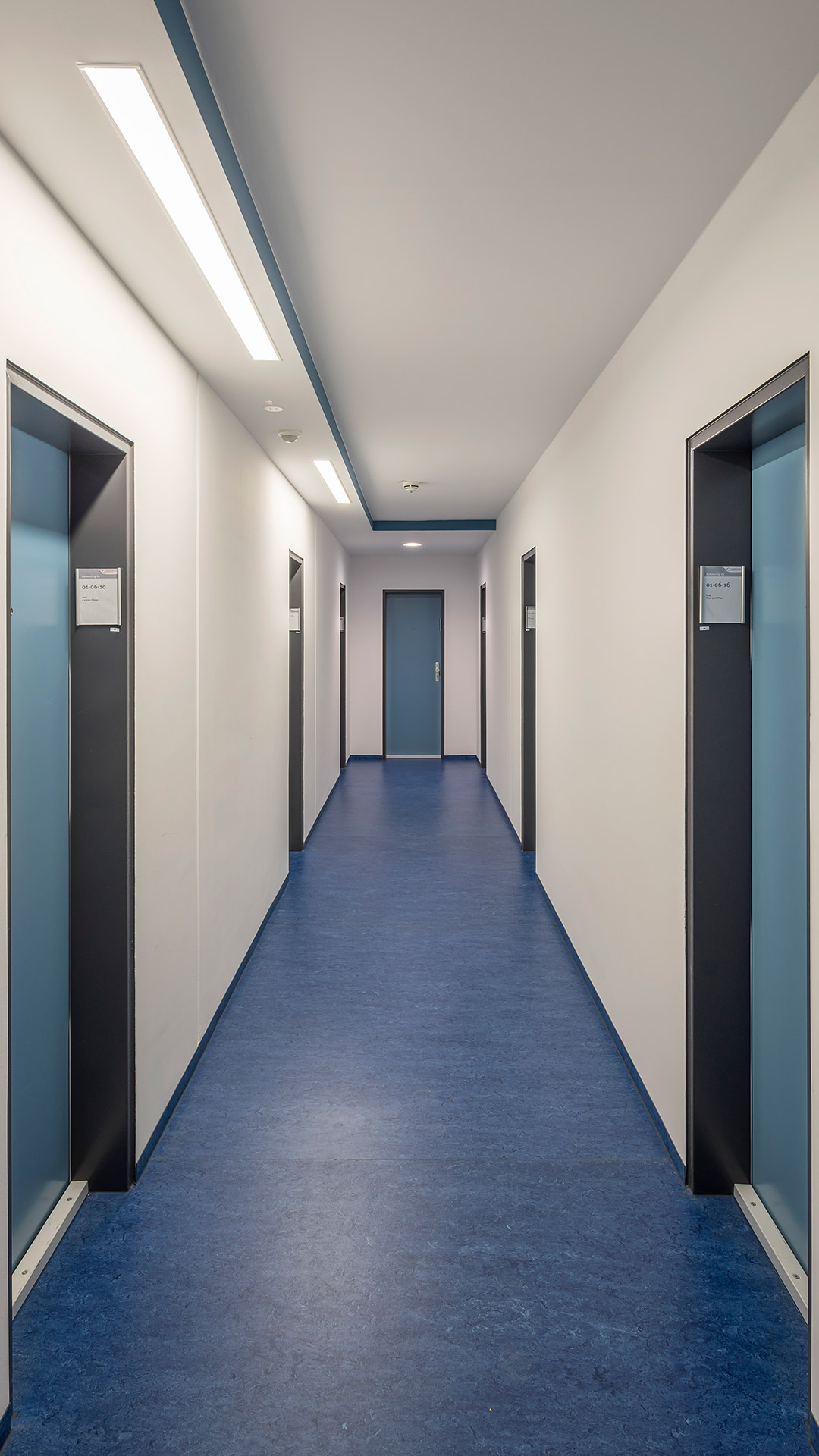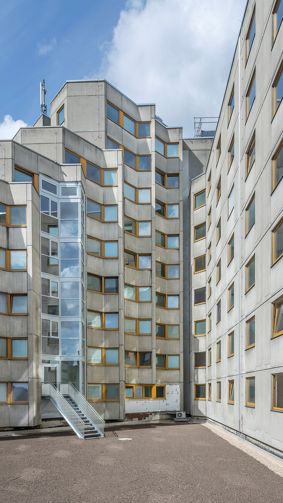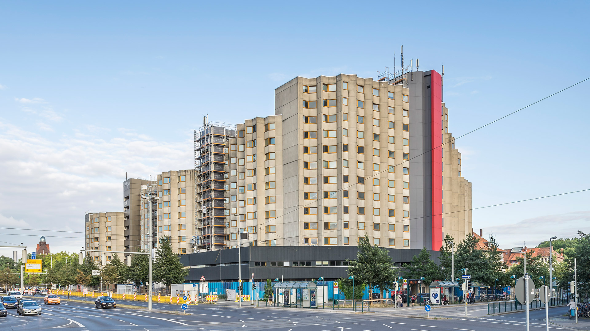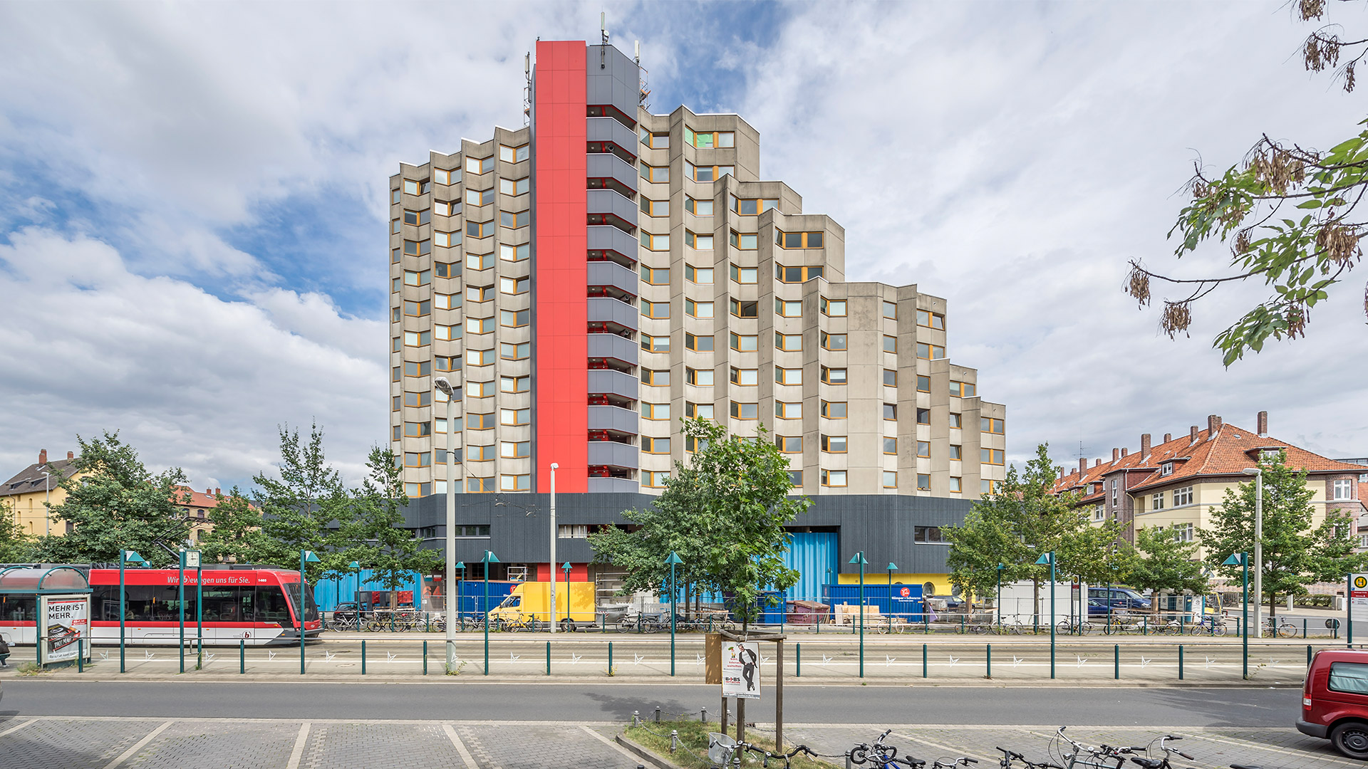 Das Hochhaus von 1976 wurde von uns vollumfänglich energetisch und brandschutztechnisch saniert, von Schadstoffen befreit und technisch auf den neuesten Stand gebracht – und das Ganze im teilbewohnten Zustand umgesetzt.